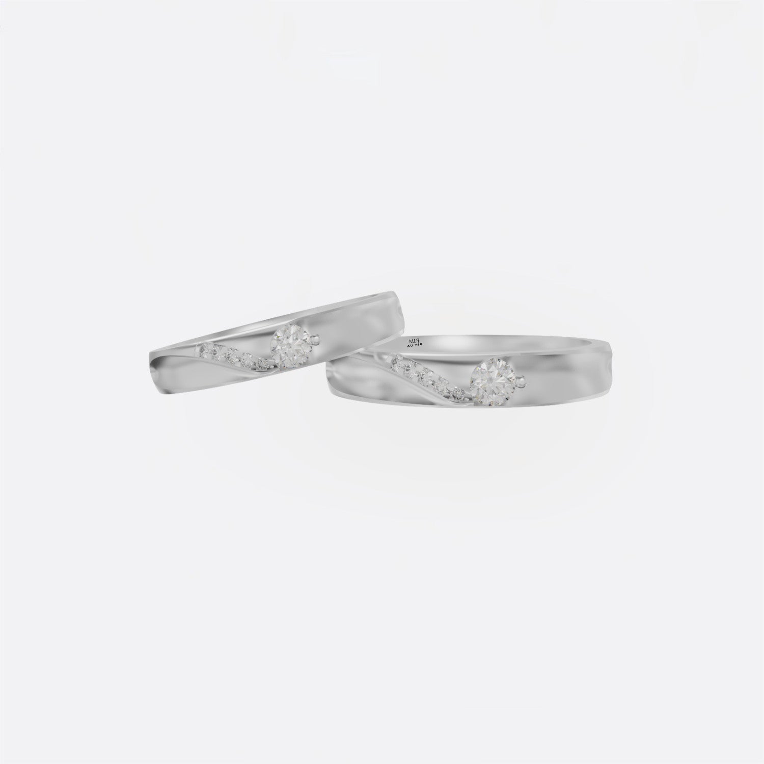 Viên đá chủ 4 ly và viên 1 ly mang lại vẻ đẹp tinh tế trong một thiết kế khá đơn giản được thiết kế 3D. Nhẫn cưới vàng trắng được MDJ chế tác hoàn toàn thủ công bởi những người thợ chuyên chế tác nhẫn cưới.